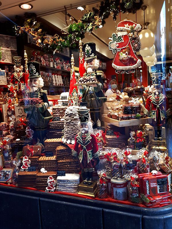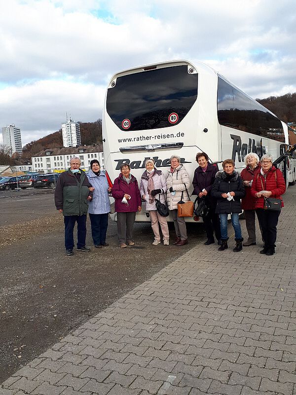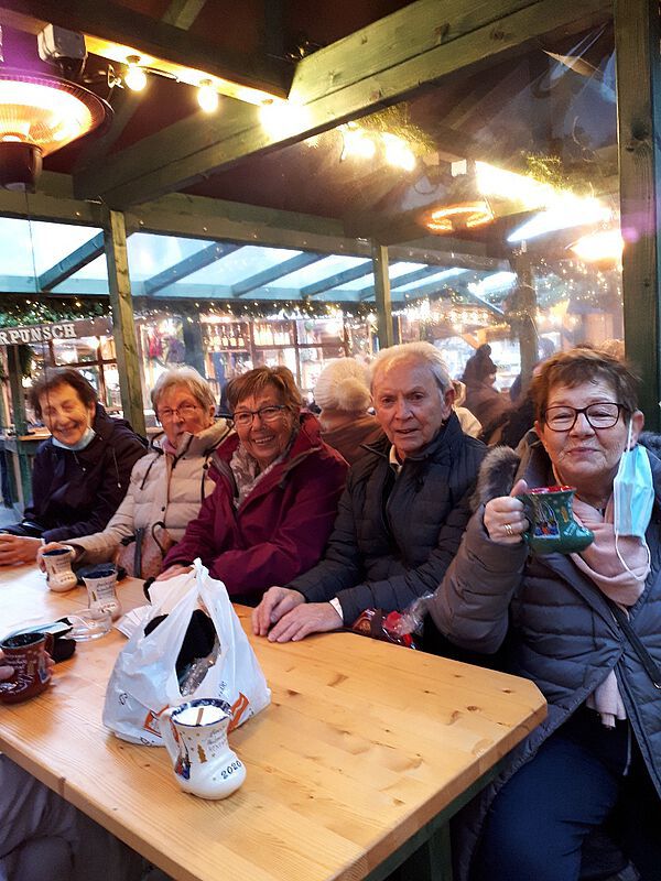 Unter strenger Einhaltung der vorgeschriebenen 2G-Corona-Schutzmaßnahmen fuhren wir mit 2 Bussen Richtung Aachen. Der erste Stopp brachte uns zum Werksverkauf von Lambertz und anschließend zu Lindt. So mancher, der eigentlich nur eine Kleinigkeit besorgen wollte, verließ mit gut gefüllten Einkaufstüten das Gelände. Freundlicherweise öffneten unsere Fahrer die großen Klappen im unteren Teil des Busses, damit die Schnäppchen sicher gelagert werden konnten. Vom Busparkplatz aus ging es danach zu Fuß oder mit dem bereitstehenden Shuttlebus zum Weihnachtsmarkt in die Innenstadt. Auf verschiedenen Plätzen zwischen Elisenbrunnen, Dom und Rathaus besuchten wir festlich dekorierte Buden. Einige von uns wurden bei Käthe Wohlfahrt fündig, andere freuten sich über Liköre, Schmuck und besonders bunte Socken. Selbstverständlich wurde auch Glühwein mal in rot und weiß probiert, was die ohnehin schon gute Laune noch steigerte. Natürlich durften auch die berühmten Aachener Printen nicht fehlen, neben Domspitzen gab es sogar vegane Variationen. Es machte viel Freude, in den Bäckereien mit ihren liebevoll geschmückten Schaufenstern vorbeizuschauen. Als Top Sehenswürdigkeit gilt der 1200 Jahre alte Dom im Zentrum der Altstadt. Diese Krönungskirche und Grabstätte Karl des Großen wurde als erstes deutsches Bauwerk 1978 zum Weltkulturerbe ernannt. Die interessante Architektur und reiche künstlerische Ausstattung beeindruckte viele von uns. Als es langsam dunkel wurde, sorgten die vielen Lichter auf und rund um den Weihnachtsmarkt -der zu Recht zu den schönsten Deutschlands zählt- für eine heimelige Atmosphäre. Noch immer hielt sich der Publikumsverkehr in Grenzen und man konnte entspannt und ohne Gedränge bummeln. Gegen 19 Uhr trafen wir wieder am Dißmann-Haus ein und wir freuten uns über einen gemeinsam verbrachten Tag, bei herrlichem Wetter und mit einigen Weihnachtsgeschenken im Gepäck.