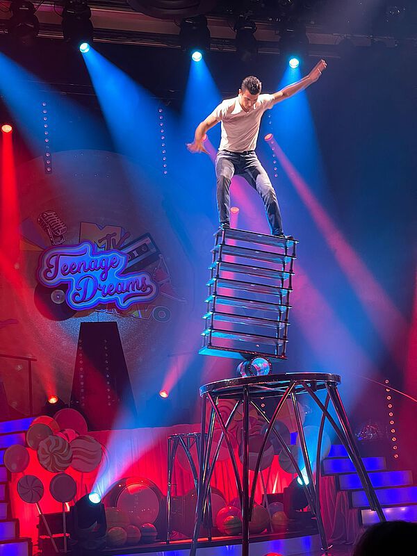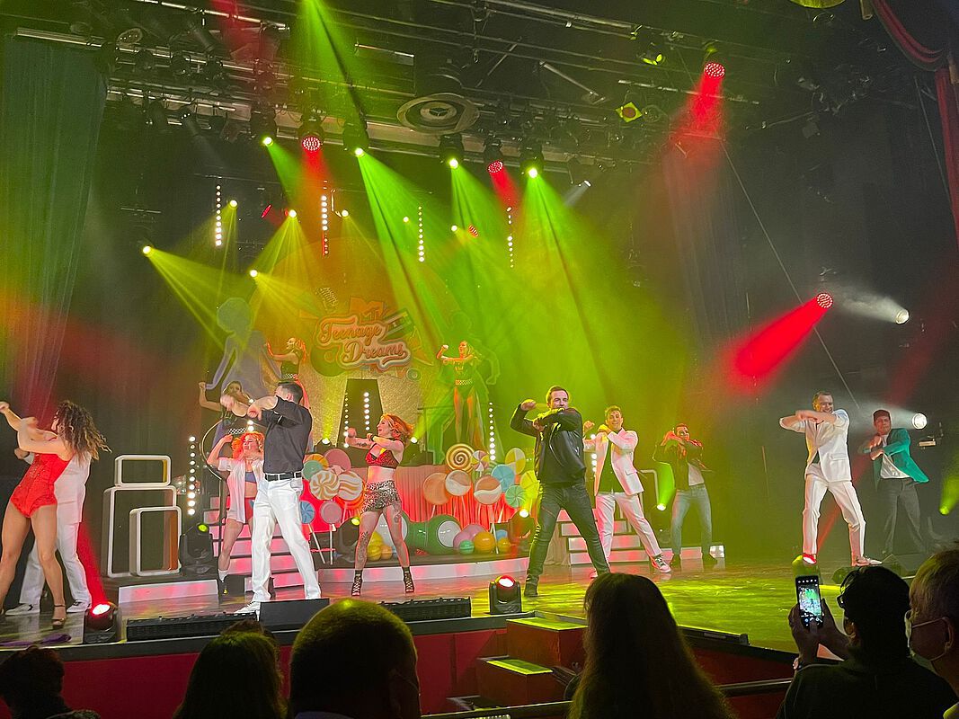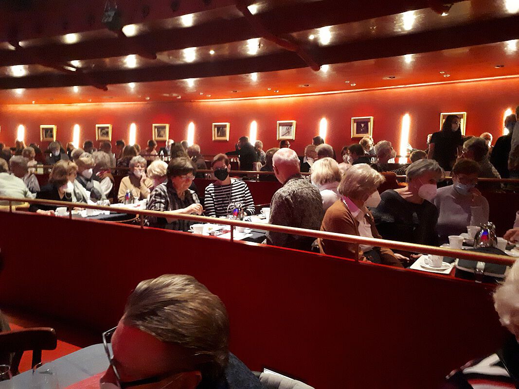 Nachdem – wie mittlerweile ja schon Standard- alle Impfnachweise kontrolliert waren, konnte unsere Fahrt zum Apollo-Theater starten. Wir hatten so viele Teilnehmer wie selten, und mussten uns daher diesmal auf einen großen und 2 kleine Busse verteilen. Aber alles hat gut geklappt und wir kamen pünktlich in Düsseldorf an. Angekommen am Theater mussten wir noch einmal unsere Impfnachweise und Personalausweise vorzeigen, aber es diente letztendlich ja unserer eigenen Sicherheit. Alle unsere Plätze lagen im Parkett und so hatte jeder einen guten Blick auf die Bühne und das Geschehen. Die Tische waren für uns reserviert und wir konnten immer zu sechst Platz nehmen. Um großes Gedränge zu vermeiden, haben wir vorab die Tische schon einmal zugeordnet und so konnten alle ganz entspannt den entsprechenden Platz aufsuchen. Zu unserer Freude wurde gleich Kaffee und Tee serviert (so viel man wollte, Nachschub kam sofort) und wir konnten aus dem Kuchenangebot auswählen. Die Darsteller nahmen uns in der Show mit auf eine Zeitreise in unsere Jugend, als es noch Schmetterlinge im Bauch und große Gefühle gab. Die Songs waren uns alle noch in Erinnerung und wurden von den Mitwirkenden hervorragend vorgetragen. Wir konnten mit fantastischen Künstlern waghalsige, traumhaft schöne und beeindruckende Momente erleben- Von Rollerskating-Akrobatik und atemberaubender Partner-Artistik bis hin zu Gesang und Comedy wurde uns ein abwechslungsreiches Programm geboten. Es gab viel Applaus und wir hätten alle gerne noch mehr Zeit dort verbracht. Aber freuen wir uns dass wir einen Nachmittag erleben konnten, der uns Corona für eine kleine Zeit hat vergessen lassen. Wenn auch Sie einen vergnüglichen Nachmittag mit uns verbringen möchten, so schauen Sie doch auf unsere Flyer. Die nächste Tagestour geht ins Hänneschen Theater nach Köln. Kommen Sie doch donnerstags in der Zeit von 14:00 Uhr bis 17:00 Uhr in unser Büro auf der Solinger Straße 111 in Langenfeld und schauen Sie sich unsere Programme an. Wir haben neben Tagesfahrten auch Mehrtagesreisen im Angebot.
