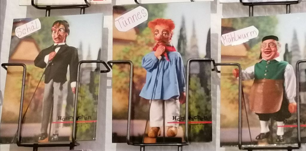 Puppenspiele der Stadt Köln-mit dem Programm „Dat wood och Zick!“ Für unsere Fahrt nach Köln zum Hänneschen Theater waren alle Teilnehmer frühzeitig vor Ort, da heute zu den schon üblichen Kontrollen zusätzlich ein vom Theater verlangter, aktueller Test vorgelegt werden musste. Die Abfahrt verschob sich ein wenig nach hinten, da der Bus unterwegs Probleme hatte. Aber da wir einen der besten Fahrer hatten, haben wir einen Teil der verlorenen Zeit einholen können und kamen trotz allem noch pünktlich an. Also – wie sagt der Kölner: Et hat noch immer jot jejange !!! Durch einen glücklichen Zufall hatten wir die Gelegenheit, für die meist ausverkauften Vorstellungen der Puppensitzung ein größeres Kontingent an Karten zu bekommen. Unsere Plätze lagen alle im mittleren Bereich des Saales und die meisten hatten einen guten Blick auf die Bühne. Ein bisschen schwierig war es für einige, die die großen Hüte der diesmal“ 4 Musketiere“ vor der Nase hatten, aber mit ein wenig nach rechts und links rutschen wurde auch das geregelt. Ein paar Informationen über das Theater : Gegründet wurde es 1802 in der Mauthgasse von dem Schneider Winters. Die Anfänge dieses Puppentheaters waren einfache Krippenspiele für Kinder, die in der Adventszeit aufgeführt wurden. Winters hatte von Anfang an Erfolg und war bereits beim ersten Karnevalszug 1823 in Köln dabei. Als Winters 1862 verstarb, führte der Ehemann einer Enkelin das Theater weiter. 1919 verstarb auch das letzte Mitglied der Puppenspielerfamilie und das Theater wurde geschlossen. Auf Bestreben von Konrad Adenauer gründete sich 1925 eine Kommission zu Wiederbelebung der Kölner Puppenspiele und 1926 gab es eine Wiedereröffnung in der Sternengasse. Seit Juli 1938 befindet sich das Hänneschen Theater mit einigen Unterbrechungen in der Kriegs- und Nachkriegszeit, am Eisenmarkt in der Kölner Altstadt. Die fiktiven Figuren verkörpern die typischen Eigenschaften eines Kölners, so Tünnes und Schäl, Hänneschen und Bärbelchen sowie andere originelle Persönlichkeiten. Die Puppensitzung ist jedes Jahr eine Persiflage auf den Sitzungskarneval: Eine Karnevalssitzung, in der neben den üblichen Figuren des Puppentheaters auch die Puppenversionen aktueller Kölner Karnevalsgrößen mitspielen. Durch die Sitzung geführt hat der Sitzungspräsident Schäng, unterstützt durch den Literaten Speimanes. Auch das Kölner Dreigestirn durfte bei dem Theaterstück natürlich nicht fehlen. Neben ihren Altstädter-Kameraden waren Prinz Sven I., Bauer Gereon und Jungfrau Gerdemie Teil des Stücks. .Ebenfalls mit von der Partie war die Popgruppe "AGGA", die doch sehr an eine schwedische Gruppe mit ähnlichem Namen erinnerte. Großen Beifall erntete der Publikumsliebling "Skully". Das Skelett erzählte von seinen Sorgen und Problemen in der Coronazeit und hat uns bei dieser Gelegenheit auch "Et ärme Dier" vorgestellt und Ratschläge gegeben, wie es zu behandeln ist. Die wichtigsten Figuren im Theater sind: Hänneschen Der Held der meisten Stücke Bärbelchen seine Freundin Tünnes Vater von Köbeschen Schmitz, ist ruhig, gutmütig und etwas einfältig Schäl der Typ des Kölner Städters, wird durch seinen Namen ausreichend charakterisiert Speimanes ist gewissermaßen der Hofnarr der Theatertruppe Schnäuzerkowski, Schutzmann der auf rheinisch-gemütliche Art für Ruhe und Ordnung sorgt Köbeschen Schmitz ist der Sohn des ledigen Tünnes Röschen Tochter von Schäl Nach Ende der Vorstellung hat der Bus schon auf uns gewartet und wir konnten zügig unsere Rückreise antreten. Alle Teilnehmer haben sich positiv geäußert und waren froh darüber, ein paar vergnügliche Stunden verbracht zu haben.