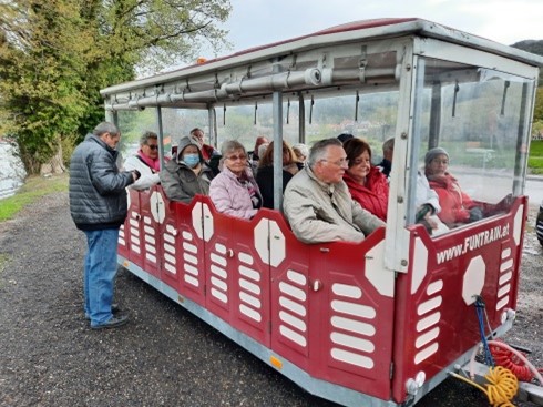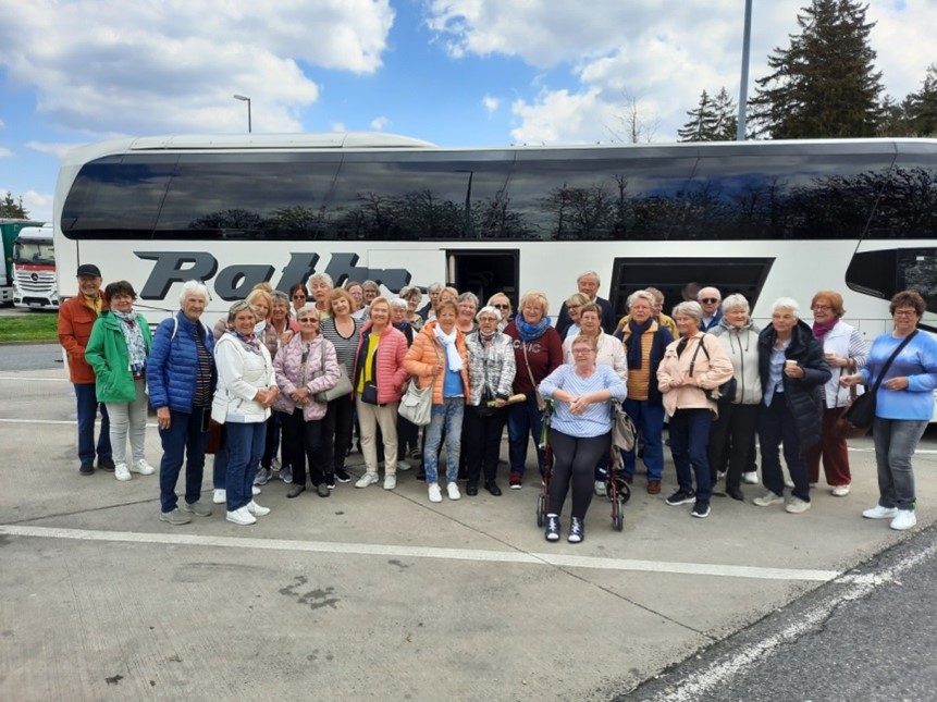 Mit 45 Senioren fuhren wir am 22. April in aller Herrgotts Frühe um 5:00 Uhr mit dem Bus, nachdem alle Koffer verstaut waren und auch die Rollatoren nach Passau. Wir machten mehrere Pausen um Kaffee zu trinken und ein kleines holländisches Gebäck zu essen. Das erste Stück waren alle noch sehr schläfrig, aber dann kam die Aufregung = verpassen wir auch nicht das Schiff, wie werden die Koffer verladen. Aber alles ging seinen normalen weg. Wir kamen pünktlich und die Mannschaft holte die Koffer vom Bus ins Schiff. Alle bezogen die Kabinen und waren überrascht = wo sind die Betten? Überraschung, das waren alles Sofas, die von der Mannschaft während des Abendessens zum Bett umgestaltet wurden. Wir wurden vom Kapitän und Herrn Herrgott begrüßt, und an den Platz geführt. Es gab 2 mal am Tag warmes Essen mit Suppe, Vorspeise, Hauptgericht, dazu kostenlos Wein und Wasser. Nicht zu vergessen die tollen Nachtische. Unsere Route ging mit der wunderbar nostalgischen „Rossini“, der früheren „Donauprinzessin“ von Passau über Bratislava, Budapest, Esztergom, Wien, der Wachau und zurück nach Passau. In Bratislava machten wir eine interessante Stadtrundfahrt und sahen das erste muslemische Gotteshaus. Unsere professionelle Reiseleiterin erklärte uns viele Statuen. Nach dem Mittagessen ging Herr Herrgott mit uns durch die slowakische Hauptstadt. Nach dem Abendessen legte die „Rossini“ Richtung Ungarn ab. Es gab musikalische Unterhaltung in der Bar und einen Mitternachtssnack, den die meisten Gäste aber leider verschliefen, weil sie zu müde waren. Am Tag 3 erreichten wir Budapest nachdem wir durch das romantische Donauknie gefahren sind. Bei der Stadtrundfahrt wurde uns viel erzählt, auch von den tollen Villen, die überall standen. Nach dem Abendessen ging die Nachtfahrt mit vielen Schleusen zum Donauknie und Esztergom, wo wir den Dom in Esztergom besuchten. Wir genossen einen schönen Ausblick auf die Donau. Um 12:00 Uhr legte das schwimmende Hotel Richtung Wien ab. Wie immer gab es leckeres Mittagessen auf dem Schiff. Der Nachmittag stand zur freien Verfügung, wo uns Herr Herrgott noch einen Bericht über Rossini zeigte und einige Opernpassagen zu Gehör brachte. Man hatte die Möglichkeit mit dem Kapitän in den Schiffsrumpf zu kommen und den Maschinenraum anzusehen. Am Tag 5 waren wir in Wien. Um 09:00 Uhr gab es die Stadtrundfahrt. Es gab immer 3 Busse. Einer extra für die Gäste von „Hänschen“, der wohl die ganze Strecke über das Schiff begleitete. Die Stadtrundfahrt ging zunächst Richtung Hundertwasserhaus, wo die ersten Mitbringsel gekauft wurden. Die urige Reiseleiterin erzählte in tiefsten Wienerisch Anekdoten und viel Wissenswertes über Wien. Einige Gäste fuhren dann wieder nach Besuch des Wiener Stephansdoms zum Schiff zurück zu Mittagessen. Andere gesellten sich unter die Wiener und gingen u.a. zum „Wiener Wald“ zu Händerl essen und zum „Fiegelmüller“, der Traditionsgaststätte, in der es die original Wiener Schnitzel aus Kalbfleisch – tellergroß - gab. Natürlich mit Preiselbeeren und Erdäpfel-Vogerlsalat – eine echte Spezialität.und sooo lecker. Manche blieben in Wien und fuhren mit einem Elektroauto 8 km durch die Stadt, das war mal was anderes. Um 2:00 Uhr in der Nacht ging das Schiff zurück zur Wachau. Von dort besuchten wir den schönen Weinort Dürnstein. Wir fuhren mit der Bimmelbahn oder die, die gut zu Fuß waren, konnten auch in den Ort laufen. Dort gab es einen Stadtrundgang mit Verkostung. Einige liefen auf die Brücke, die in der Mitte die Grenze zwischen Ungarn und der Tschechoslowakei zeigte. Nachdem wir wieder auf dem Schiff waren und mit Nachmittagskaffee verwöhnt wurden, ging es zum Kapitänsdinner, wo sich alle Matrosen und Kellner in Uniform zeigten mit brennender Eisbombe, wie im Film. Nach diesem tollen Erlebnis war die letzte Nacht an Bord angebrochen und wir fuhren wieder zum Hafen in Passau zurück, wo uns unser Busfahrer Martin schon erwartete. Leider konnten wir nicht sofort aussteigen, wir mussten über ein anderes Schiff und auch die Koffer und Rollatoren wurden von der Besatzung gut versorgt, so daß alles pünktlich wieder im Bus war, auch die Rollatorenfahrerinnen. Wenn es Ihren gefallen hat, machen Sie weitere Reisen mit der AWO. Wir würden uns freuen und bedanken uns für den guten Zusammenhalt und den Spaß auf der gesamten Donaureise.