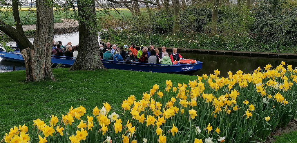 Wenn der Frühling kommt, dann schick ich Dir Tulpen aus Amsterdam…. Am Mittwoch, dem 13.04.2022 konnten sich 46 AWO-Gäste zu fast noch „nachtschlafender“ Zeit auf den Weg zu einem besonders schönen Ausflug machen. Die Reise ging in die Provinz Nordholland – zum Keukenhof. Die Anfahrt verlief ohne größere Staus und wir waren pünktlich am Ziel, um in dem uns zugewiesenen Zeitfenster in den Park eingelassen zu werden. Um 12:00 und um 13:00 Uhr stand für einen großen Teil der Gäste eine 45 minütige Fahrt mit dem „Flüsterboot“ auf dem Plan. Bei dieser Fahrt mit den elektrisch angetriebenen Kanalbooten hatte man vom Wasser aus einen tollen Blick über die Felder und hörte interessantes über die Geschichte des Tulpenanbaus. Die letzten beiden Jahre blieb die Gartenanlage coronabedingt geschlossen, jetzt aber ist sie seit 3 Wochen für Besucher wieder geöffnet. Jeder Jahr wird für die Gestaltung des Parks ein anderes Motto gewählt und dieses Jahr sind es die „Flower Classics“. Damit soll der Tatsache Rechnung getragen werden, dass Blumen seit Jahrhunderten zu unserem Leben gehören. Ursprünglich kam die Tulpe aus den Bergen von Kasachstan. Der Name geht zurück bis nach Persien sowie in die Türkei und bezeichnet auf Persisch „dulband“ oder auf Türkisch „tülbend“ - den Turban. Erstmals 1593 wurde die Tulpe in den Botanischen Garten von Leiden eingepflanzt. Man behielt sich das Recht vor, nur hier die Tulpen anzubauen – aber wie das Leben so spielt: Es wurde eingebrochen und die kostbaren Zwiebeln gestohlen. Danach verbreitete sich die Tulpe schnell über die ganzen Niederland. Jetzt zum Keukenhof: Die Geschichte geht weit zurück. 1641 wurde Schloss Keukenhof gebaut und hatte eine Fläche von über 200 Hektar ( das entspricht ungefähr 280 Fußballfeldern). 1857 gestalteten die Landschaftsarchitekten Zocher und Sohn den Garten rund um das Schloss. Der im Englischen Landschaftsstil entworfene Park bildet noch immer die Grundlage des heutigen Parks. 1949 entwickelte eine Gruppe führender Blumenzwiebel-Züchter und -Exporteure den Plan, auf dem Landgut eine Frühjahrsblumenausstellung zu starten. 1950 eröffnete der Frühlingspark Keukenhof zum ersten Mal und buchte sofortigen Erfolg: 236.000 Besucher. 2022 findet die 73. Ausgabe statt. In den letzten 72 Jahren hat sich Keukenhof zu einem weltweiten Begriff entwickelt. Jedes Jahr im Frühling verwandelt sich Holland in ein wahres Blüten- und Farbenmeer. Von Ende März bis Mitte Mai blühen auf den großen Feldern Millionen Tulpen, Narzissen und andere Zwiebelpflanzen. Was viele Besucher nicht wissen ist, dass es hier hauptsächlich um die Blumenzwiebeln und nicht so sehr um die Blüten geht. Nach der Blüte werden die Felder sofort abgemäht, damit sich die Kraft der Pflanzen hauptsächlich auf die Zwiebel konzentrieren kann. Die so entstehenden großen, kräftigen Zwiebeln werden im Sommer ausgegraben, getrocknet und in die ganze Welt verschickt. Der Keukenhof bietet nicht nur 15 KM Wanderwege und eine schöne Kulisse für die 7 Millionen Frühlingsblumen, sondern eignet sich auch ausgezeichnet für Statuen und andere Kunstobjekte, die dem Park eine extra Dimension verleihen. Die Kombination des blühenden Parks mit der Kunst ist überraschend. In die kunstvoll gestalteten Blumenbeete fügen sich über 100 Kunstwerke von internationalen Künstlern stilvoll ein, der Keukenhof ist somit der größte Skulpturengarten der Niederlande. Es gab verschiedene Themen zu bestaunen, z.B. den neu hergerichteten historischen Garten mit Tulpen-Sorten aus dem 16. und 17. Jahrhundert. Eine der sogenannten Ur-Tulpen ist zum Beispiel die Black Parrot, eine schwarze Papageienblume. Weiter einen japanischen Garten, in dem es die Gärtner geschafft haben, mit Ahornbäumen und einem speziellen Konzept ein japanisches Ambiente zu zaubern. Für den eigenen Garten zu Hause bietet der Keukenhof in acht kleinen Inspirationsgärten viele Ideen zur Gestaltung für Blumen- oder Kräutergärten an. Auch ein Grüner Tee Garten war zu sehen. Ein Teegarten ist sehr einfach. Auswahl in Hülle und Fülle an Minze, Zitronenmelisse, Kamille, Schokoladenminze, Anis und noch vielen anderen Leckereien. In diesem Gewächshaus konnte man eine Tasse Kaffee oder Tee genießen und dabei die Pracht bestaunen. Sogar einen tropischen Strandgarten konnten wir bewundern. Zwischen Palmen, welligen Blumenrändern, Sand, Boot und Hängematten kam Urlaubsfeeling auf und man hatte genug Zeit, hier ein wenig zu entspannen. In den großen Pavillons, teilweise aus Glas, werden thematische Ausstellungen sowie verschiedene Blumen-Shows veranstaltet. Schon seit einigen Jahren gehören auch eine faszinierende Orchideen-Schau sowie die Darbietung von Lilien, Nelken, Rosen und Iris in den schönsten Farben, dazu. Bei unserem Besuch gab es im Pavillon „Beatrix“ eine Anthurium und Orchideen Schau und im Willem Alexander Pavillon ging es um Bunte Blumen- und Pflanzen - das konnte man sich auf keinen Fall entgehen lassen. Wie bei unseren Gästen üblich, waren gegen 16:00 Uhr alle pünktlich zurück am Bus und wir konnten unsere Heimreise antreten. Das Verkehrsaufkommen auf den Straßen und Autobahnen war um diese Uhrzeit schon hoch, aber unser Busfahrer hat uns sicher und zügig wieder nach Hause gebracht. Von allen kamen positive Rückmeldungen und man war sich einig, dass es ein wunderschöner Tag war und die Fülle von Farben und Formen der Blumen eine lange Anfahrt wert waren.