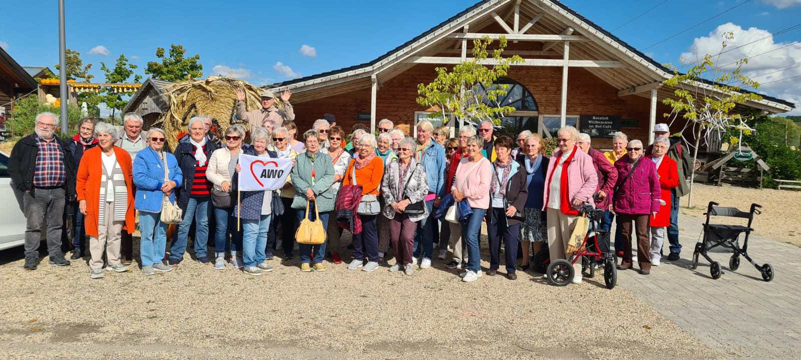 Bei herrlichem Sonnenschein startete der erste Herbstausflug der AWO-Reisefreunde zum Freilichtmuseum Kommern. Vor Ort verlangte der anstrengende Anstieg zum Eingang von den Senioren viel Kraft ab. Der früher angebotene Zubringerdienst musste nämlich wegen Personalmangel eingestellt werden, aber mit entsprechender Unterstützung und einem langen Atem wurde der Weg gemeistert. Das LVR-Museum - eines der größten Europas - lockt mit vielen historischen Gebäuden, wie Bauernhof, Kaufladen, Mühle und Schule. Es lädt ein zu einer Reise in vergangene Zeiten des Alltagslebens in Eifel, Berg. Land, Westerwald und Niederrhein. Eine interessante Führung zum Thema „Wir Rheinländer“ führte uns durch die fiktive Kleinstadt Rhenania und beleuchtete die französische Zeit 1794 bis zu den Wirtschaftswunderjahren um 1955. Gegen Mittag nutzten einige die frühere Gastwirtschaft „Zur Post“ mit Eifeler Murrepott (Möhren-Kartoffelstampf) oder Eifeler Bauernbrot für eine kurze Pause, bevor wir dann zum nächsten Ziel dem Krewelshof fuhren. Hier erwartete uns die größte Kürbisschau NRWs, in diesem Jahr mit dem Thema „der Wald und seine Tiere“. Wir waren beeindruckt von den großartigen Gestalten und der Rundgang machte viel Freude. Neben den bekannten Kürbissorten wie Hokkaido oder Schnitzkürbis gab es auch Muskatkürbis, den blauen Husaren, Mandarin oder Babyboo zu bestaunen und auch zu kaufen. Einige von uns ließen sich die leckere Kürbissuppe schmecken, andere genossen das vielfältige Angebot an Kuchen und Torte. Gegen 17:30h fuhren wir wieder Richtung Langenfeld und freuten uns über den gelungenen Tagesausflug in die Eifel.