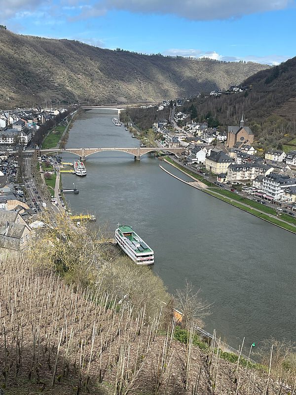 Mit einem vollbesetzten Bus starteten wir gut gelaunt Richtung Mosel. Traditionell zwei Wochen vor Ostern findet in Cochem der Ostermarkt statt. Wir freuten uns auf Deko, Handwerkskunst, Geschenke und Leckereien. Dort angekommen stellten wir fest, dass dieser vielbeworbene „Besuchermagnet“ bedeutend kleiner ausfällt als wir erwartet hatten und die Stände recht übersichtlich und schnell abgelaufen waren. Gut, dass das malerische Cochem selbst noch zahlreiche Sehenswürdigkeiten bietet. Wir schlenderten durch enge Gassen der Altstadt, bestaunten die gut erhaltenen mit Moselschiefer gedeckten Fachwerkhäuser und pausierten bei lokalen Köstlichkeiten, z.B. dem berühmten Cochemer Riesling, am historischen Marktplatz. Wer gut zu Fuß war, besuchte die mittelalterliche Reichsburg, sie thront ca. 100 m auf einem Hügel und bot herrliche Ausblicke auf die Stadt und auf die Mosel. Einige von uns machten eine Bootstour, um die besondere Landschaft zu genießen und sahen viele Weinberge und kl. Dörfer, entlang des Flusses. Eine Gruppe von Senioren beschloss mit der Bimmelbahn die zahlreichen Sehenswürdigkeiten zu erkunden. Man erfuhr einiges über die Geschichte der Stadt, passierte das Enderttor, die Stadtmauer, das Rathaus und die kath. Kirche St. Martin. Diese ist berühmt für ihre modernen u farbenprächtigen Glasfenster. Die Bimmelbahn fuhr auch durch die Weinberge, die sich an den Hängen der Mosel erstrecken. Die Fahrt dauerte ca. 45 Min. und war eine entspannte und informative Art, Cochem kennenzulernen. Diese unterschiedlichen Aktivitäten boten uns eine Vielzahl von Möglichkeiten, den Tagesausflug zu erleben und zu genießen.