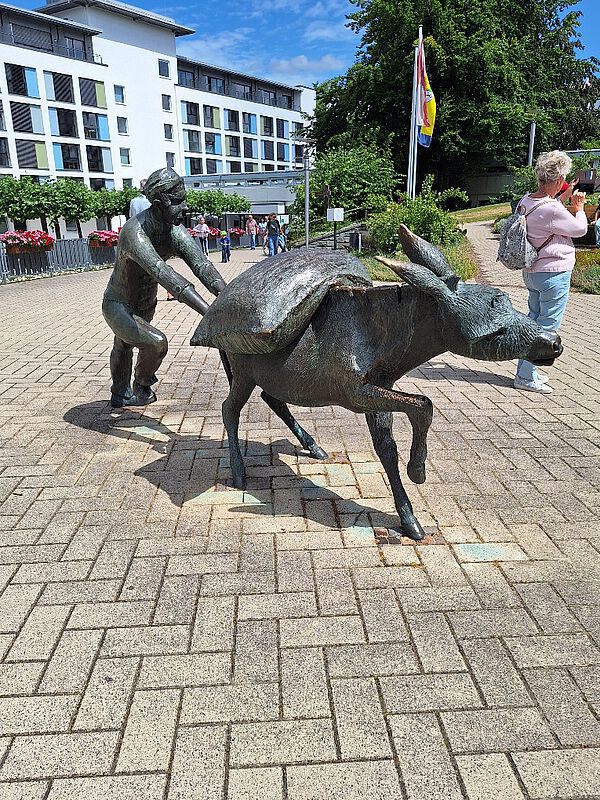 Unsere Tagestour am 28. Juni 2023 führte uns nach Bad Sassendorf. Nach der großen Hitze hatten wir an diesem Tag angenehme Temperaturen und Sonnenschein. Bei unserer Ankunft wurden wir von unseren beiden Gästeführerinnen empfangen. Aufgeteilt in zwei Gruppen begann die 1,5 stündige Führung. Gemütlich und entspannt ging es durch den schönen Kurpark mit blühenden Blumen, Wasserflächen, altem Baumbestand und riesigen Trauerweiden. Im Park waren sehr schöne Kunstwerke aus Bronze und Stein zu bestaunen. Der Weg führte uns an einigen Kurhäusern vorbei und zu einer kleinen Einkaufsstraße mit Modegeschäften, Brauerei, Café, Restaurant und zwei Eisdielen. Vor einer kleinen Gruppe von Fachwerkhäusern stand ein schöner Brunnen mit kunstvollen Bronzefiguren. Sie stellten das frühere Leben in Bad Sassendorf dar. Die Evangelische Pfarrkirche, erbaut im 15. Jahrhundert, besichtigten wir auch. Hier gab es einen Taufstein aus dem 14. Jahrhundert und ein Altarbild aus dem 17. Jahrhundert. Das Prunkstück im Kurpark ist das 73 Meter lange Gradierwerk mit drei Ebenen. Es wurde Anfang 2020 fertiggestellt. Das Grundgerüst ist eine Balkonkonstruktion. In dieses Gerüst sind Schwarzdornbündel eingearbeitet. Mit Hilfe von Pumpen wird die Sole auf den Dornenwänden verteilt. Zur Aussichtsplattform im zweiten Obergeschoss fährt sogar ein Aufzug. Dort hatten wir einen fantastischen Blick über den Kurpark. Ganz unter der Dachspitze lagern Whiskyfässer zur besonderen Reifung. Die salzhaltige Luft und die besonderen klimatischen Verhältnisse im Gradierwerk sorgen innerhalb von drei Jahren für eine besondere Note. Zertifikate zum Kauf des Whiskys werden angeboten und sind schnell ausverkauft. Um das Gradierwerk stehen zahlreiche Bänke zum gesunden Durchatmen der wohltuenden Wirkung der Mineralstoffe in der Sole. Angrenzend ist die Börde Therme mit Sauna. Hier gibt es sogar eine Sauna und einen Ruheraum im Gradierwerk. Das ist einmalig in Europa. Über viele Jahrhunderte gab es in Bad Sassendorf Salzproduktion und -handel. Ab dem 19. Jahrhundert wurde die Sole zu Bade- und Heilzwecken verwendet. Nach der Führung stärkten wir uns in einem schön gelegenen Restaurant im Kurpark. Das Essen war sehr lecker und der Service war freundlich und aufmerksam. Danach waren drei Stunden Freizeit. Spaziergang zum schönen Rosengarten mit Pavillons, am Gradierwerk auf den Bänken sitzen, Geschäfte anschauen, Kuchen oder Eis essen. Jeder, wie er wollte. Um 17 Uhr fuhr uns der Bus zurück nach Langenfeld. Alle waren sich einig. Ein schöner und entspannter Tag in Bad Sassendorf.