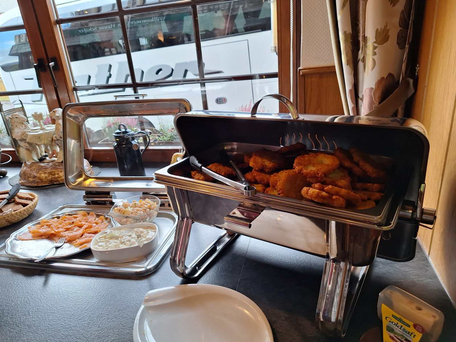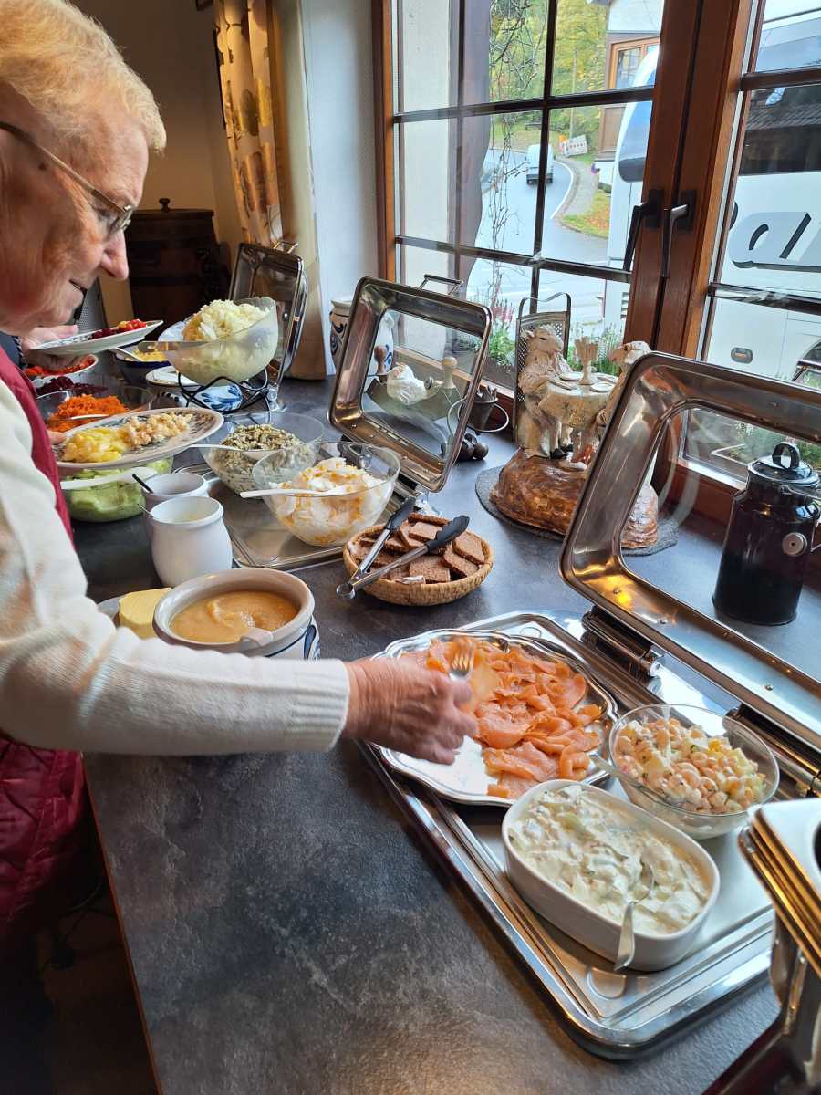 Am Freitag, den 27. 10. fuhren die AWO-Reisefreunde an die Ahr zum Reibekuchenessen nach Schuld. Es war schon erschreckend, wie das Ahrtal noch in Mitleidenschaft gezogen ist nach dem schlimmen Hochwasser vor 2 Jahren. Der Wiederaufbau gestaltet sich schwierig, keine Leute, kein Material. Der Ort Schuld liegt in einer Ahrschleife, darum auch die heftigen Zerstörungen. Die Ahr entspringt in der Nähe von Blankenheim und endet nach 85 km bei Remagen in den Rhein. Durch das Ahrtal führt einer der bedeutendsten Wanderwege, der ca. 35 km lange Rotweinwanderweg. Am Weg liegen die Orte Bad Neuenahr, Resch, Dernau, Mayschoss und Altenahr. Es fährt die Ahrtalbahn über 9 Brücken mit 16 km Strecke. Leider ist sie noch an einigen Stellen zerstört, soll aber 2025 wieder fertig sein, gleichzeitig wird der Radweg neu gebaut. Wir waren herzlich willkommen in dem kleinen Ort Schuld (ca. 600 Einwohner), im Hotel Schäfer zum großen Reibekuchenbuffet. Es gab schmackhafte, frische Salate, Reibekuchen satt, Lachs, Heringssalat, Apfelmus, Rübenkraut usw. Es wurde jeder satt und es schmeckte vorzüglich. Anschl. ging unsere Fahrt nach Bad Münstereifel an der Erft. Bad Münstereifel ist seit 1974 Kneippbad mit alter Stadtmauer. Früher war der Ort auch berühmt wegen des Heino Caffees. Es gab Kaffee mit Printen, die vorzüglich mundeten. Wenn auch Sie einen schönen Tag mit netten Leuten verbringen möchten, so schauen Sie sich doch bitte unsere Flyer für Tages- und Mehrtagesreisen an. Diese liegen in der AWO auf der Solinger Str. im Fachwerkhaus aus.