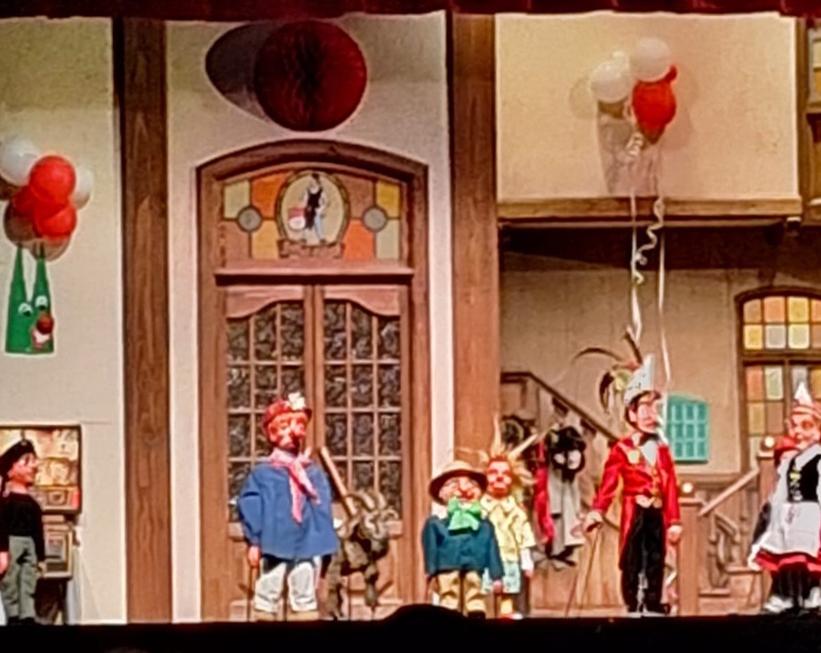 Am Sonntag, dem 21.01.2024, trafen sich 60 unternehmungslustige AWO- Reisefreunde um in Köln die Puppensitzung des Hänneschen Theater`s zu besuchen. Mit dem Reisebus und einem Kleinbus ging die Fahrt los. Zuvor wurde noch der karnevalistische Ruf „Alaaf“ geübt, damit keiner in die Versuchung kommt „Helau“ zu rufen. Nach einem Fußmarsch, erreichten wir das Hänneschen Theater und konnten nach einer kleinen kulinarischen Stärkung unsere Plätze einnehmen. Los ging es mit der Sitzung in bestem Kölsch und natürlich allen bekannten Puppen des Theaters. Neben Bärbelchen und dem Hännes, kamen Tünnes und Scheel und sogar der Geißbock zum Einsatz. Viele kölsche Baustellen, wie das Archiv und die vielen zu reparierenden Brücken wurden aufs Korn genommen. Sogar Mark Metzger wurde in das Programm eingebunden und kam als Puppe, von ihm selber gesprochen, auf die Bühne. Auch die aktuelle politische Lage mit Bauernstreik und Krieg wurden auf das karnevalistische Korn genommen. Es war ein kurzweiliger, lustiger aber auch nachdenklicher Nachmittag, den alle genossen haben. Am Ende der Veranstaltung wartete der Bus wieder auf uns. Doch der Schreck war groß, weil ein Reifen nur noch auf der Felge lief. Nach einer Wartezeit, die von allen mit viel Humor gemeistert wurde, konnte der Ersatzbus mit einer Stunde Verspätung in Köln abfahren.