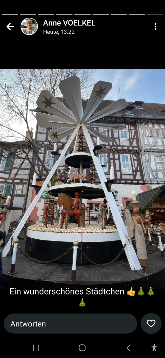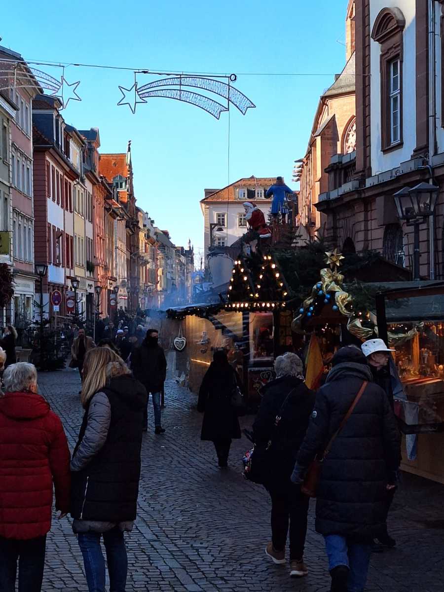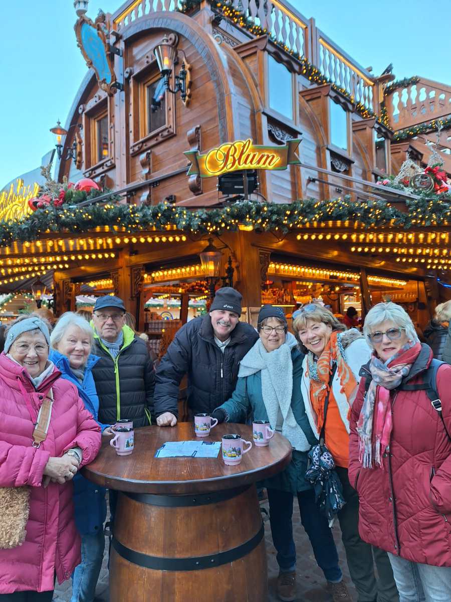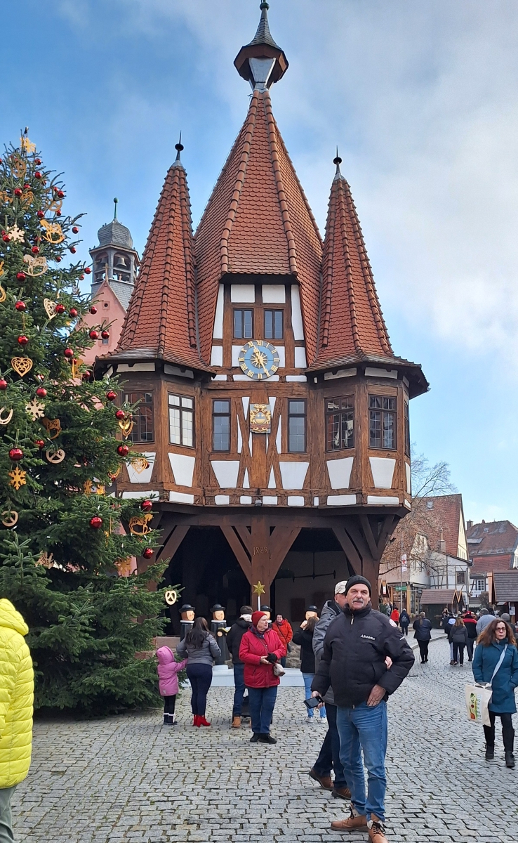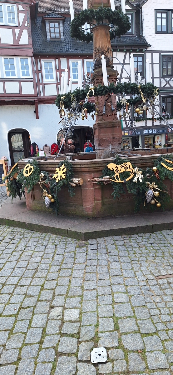 Auf unserer Reise in den Odenwald besuchten wir nach der Frühstückspause Heidelberg. Keiner wollte auf die Burg, nur auf den Weihnachtsmarkt, den ersten von drei, die uns auf dieser Fahrt erwarteten. Leider entsprach er nicht ganz unseren Erwartungen, Stände wie immer, Essen und Trinken. Wir hatten gedacht, es gäbe mehr Handwerkskunst, aber der Glühwein schmeckte schon mal gut zur Einstimmung. Nach dem ausgiebigen Bummel fuhren wir nach Zell bei Bad König, wo uns der schnuckelige Gasthof zur Krone mit leckeren Odenwälder Köstlichkeiten erwartete und sehr hübschen Zimmern, von denen alle Mitfahrer begeistert waren. Am nächsten Morgen - nach dem Frühstück ging unsere Fahrt nach Amorbach, dort besuchten wir eine Schnapsbrennerei, wo auch heute noch- klein aber fein - Schnaps aus Misteln gebraut wird. Die Flaschen werden unter anderem speziell für diverse Fußballvereine, vorwiegend für Eintracht Frankfurt etikettiert. Der Weihnachtsmarkt in Amorbach war sehr ansprechend und gemütlich, man traf sich in alten Weinkellern, die sehr hübsch dekoriert waren. Die ganze Ortschaft war ein großer Weihnachtsmarkt. Leider machten die Gaststätten erst nach 16:00 Uhr auf. Wir konnten uns aber beim DRK aufwärmen, selber gemachten Kuchen essen und Kaffee trinken. An einem Stand gab es auch den Schnaps, den wir vorher schon in der Brennerei verkostet hatten. Zum Abendessen ging es dann zurück in unser Hotel zur Krone, wo eigentlich Bingo gespielt werden sollte, aber im Ort gab es auch noch einen Weihnachtsmarkt, den die Gäste lieber besuchen wollten und einen illuminierten Park, der bekannt über die Landesgrenzen ist. Einigen war es zu kalt, so dass man im Hotel blieb bei netter Musik und guten Gesprächen. Die vorgesehenen Bingo-Preise verlosten wir auf der Heimfahrt, was sehr lustig war. Am Sonntag, den 1.12. – dem ersten Adventssonntag - ging die Fahrt zurück über den schönsten Weihnachtsmarkt in Michelstadt, der war einfach wunderschön. Er begann in einer Halle und dann ging es durch Michelstadt mit seinem schönen Rathaus und romantischen Ecken. Der ist immer wieder eine Reise wert. Wir warnen im Sommer ja schon mal da, nun war alles schön geschmückt und hat einfach eine tolle Atmosphäre. Keiner wollte nach Hause, wir hatten aber ja noch 4 Stunden Fahrt vor uns und der Busfahrer musste seine Ruhezeiten einhalten. Jedem alles recht zu machen, ist nicht immer einfach, aber ich denke, die Fahrt hat allen super gefallen und es wurden neue Kontakte geknüpft.