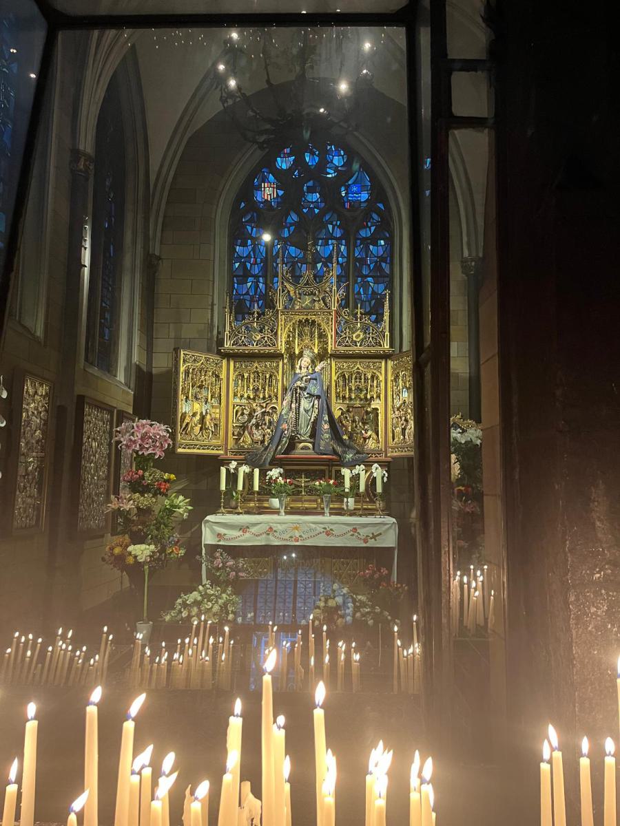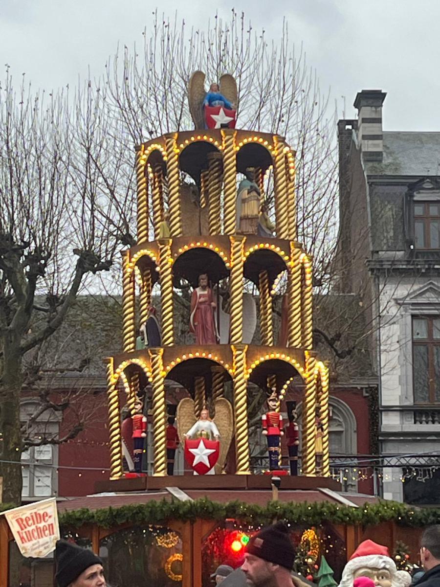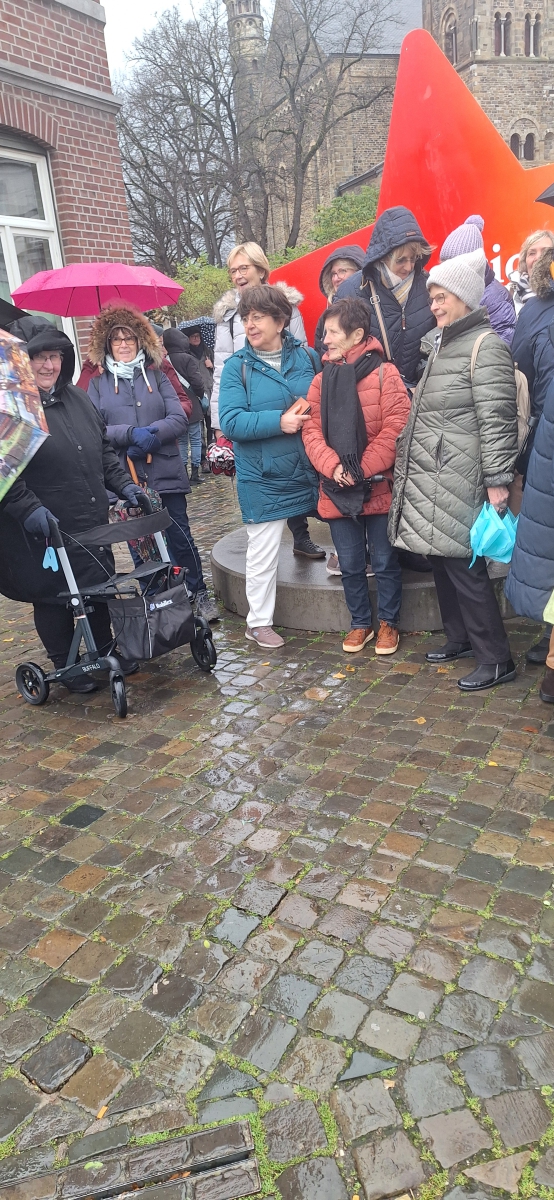 Am 05.12.2024 ging es mit 58 Senioren in 2 Bussen zum Weihnachtsmarkt in Maastricht. Die Erwartungen waren schon hoch, weil viele bereits den Weihnachtsmarkt besucht hatten und nur Gutes zu berichten wussten. Nach 2 Stunden hatten wir unser Ziel erreicht und wir wurden von einem mächtigen Regenschauer begrüßt, der so nicht eingeplant war. Die Wege in die Stadt, vom Ufer der Maas aus, waren wunderschön erleuchtet und weihnachtlich geschmückt. Den ersten kleinen Unterschlupf vor den prasselnden Regen bot die Augustinerkirche, die im Inneren eine kleine Krippenausstellung präsentierte. Weiter ging es durch die festlich geschmückten Straßen, vorbei an vielen kleinen Geschäften, die zum Stöbern und Kaufen anregten, zum Frijthof. Dort angekommen viel uns als erstes das 45 Meter hohe Riesenrad ins Auge, das beleuchtet seine Runden drehte und zum Mitfahren einlud. Von oben hatte man aus den geschlossenen und regensicheren Glasgondeln einen wunderschönen Ausblick auf den Weihnachtsmarkt und die vielen alten Gassen rund um den Frijthof. An der Eisbahn konnte man den Runden drehenden Eisläufern zuschauen und dabei einen leckeren Glühwein oder heißen Kakao genießen. Auch Fritten mit Spezialsoße, Frikandeln, Kibbelinge und Glühwein mit Schobbeler Likör standen auf der Kulinarischen Liste. Wer vom Weihnachtsmarkt genug hatte suchte die umliegenden Gaststätten auf, um dort zu entspannen und zu trocknen. Ein besonders außergewöhnliches Erlebnis war die Dominikanerkirche, die eine wunderschöne Buchhandlung ist. Auch gibt es dort im Kirchenkaffe bei „Coffeelovers“ echten in Maastricht gerösteten Kaffee und besonders guten Kuchen. Um 17:00 Uhr traten wir unseren Rückweg an und der Bus brachte uns sicher nach Langenfeld. Um 19:00 Uhr waren wir wieder in Langenfeld bepackt mit vielen Tüten und noch mehr schönen Erlebnissen an einen eindrucksvollen Tag in Maastricht.
