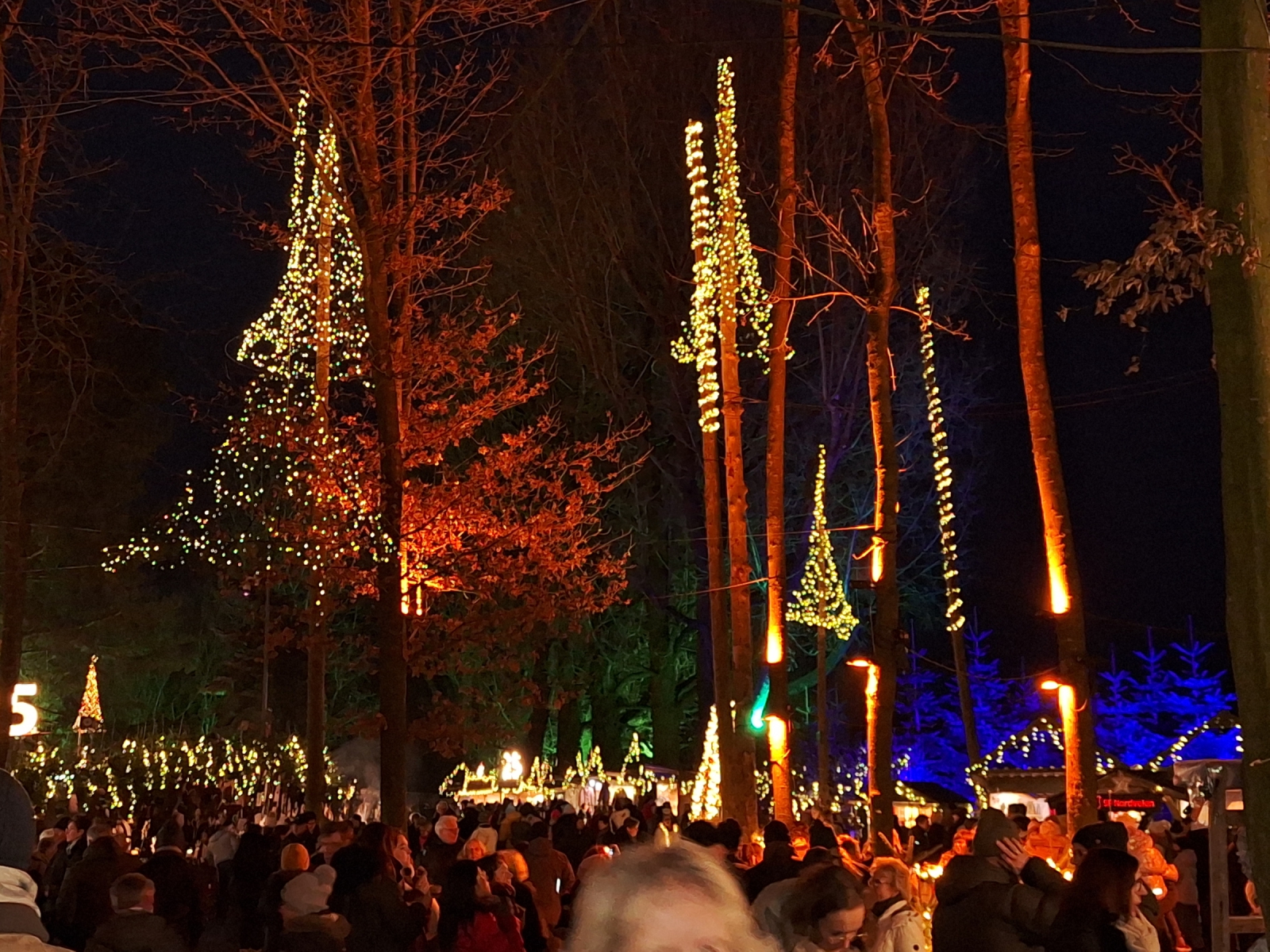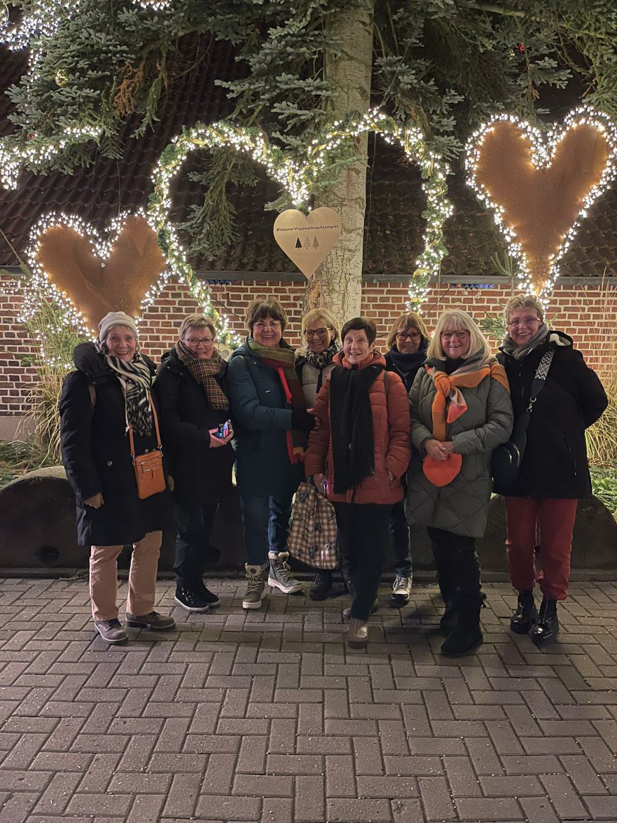 Am Freitag, dem 13.12.2024, fuhren wir zum Waldweihnachtsmarkt nach Velen, auf das Landgut Krumme. Die Nachfrage war so groß, dass wir mit zwei Reisebussen und 74 Personen unterwegs waren. Schon früh am Morgen herrschte gute Stimmung, und das schöne, klare und kalte Wetter, versprach einen perfekten Tag für den Weihnachtsmarkt. Nach einer 2- stündigen Anfahrt mit viel Verkehr erreichten wir mittags unser Ziel. Die Abfahrt war für 18:00 Uhr geplant, um die Lichter auch bei Dunkelheit zu erleben. So hatten alle AWO-Reisefreunde fünf Stunden Zeit, in aller Ruhe den Weihnachtsmarkt zu genießen. Er hat eine Größe von 25.000 qm. Der Waldweihnachtsmarkt in Velen ist für seine besondere Atmosphäre bekannt. In diesem Jahr feiert er sein 25- jähriges Jubiläum und zählt zu den schönsten in Deutschland. 1 Million Lichter inmitten unzähliger Weihnachtstannen und altem Baumbestand. 150 Aussteller in liebevoll gestalteten Holzhütten, Zelten, der Remise und dem Bauernhaus, machen den Weihnachtsmarkt im Wald einzigartig. Der Markt bietet eine Vielfalt an Handwerkskunst, weihnachtlichen Dekorationen und kulinarischen Köstlichkeiten. Es gab zahlreiche Gelegenheiten zum Probieren von Käse, Aufstrichen, Pralinen und Likören. Für das leibliche Wohl war bestens gesorgt. Es gab eine riesige Auswahl an leckerem Essen. Lustige Herren vom Traktoren-Museum, schälten große Kartoffelsäcke für leckere Reibekuchen. Gemütliche Plätze luden zum Verweilen ein, wo man sich bei einer Tasse heißem Glühwein oder heißem Punsch aufwärmen konnte. Auch fehlte es nicht an leckerem selbstgebackenem Kuchen und Waffeln. Ausgefallene Geschenkideen, wie das Lagerfeuer to go, eine Kerze im Vorratsglas mit Holzdocht. Knistert wie ein echtes kleines Lagerfeuer, rußt nicht, raucht nicht, kein Funkenflug. Hergestellt in einer Werkstatt für Menschen mit Behinderungen. Originell war auch ein Stand mit selbstgemachtem, fettreichen Vogelfutter in Form von kleinen Gugelhupfen und Törtchen. Eingefüllt in verschiedenen Behältern wie Tassen, Backformen und Kuchentellern. Eine sehr schöne Idee, die viele Käufer fand. Immer wieder kleine Holz-Kuschelhütten mit jeweils einer Bierzeltgarnitur für 4 Personen, luden zum Ausruhen ein. Der Weihnachtsmarkt war vor allem in den Abendstunden ein echtes Highlight. Die Bäume waren in verschiedenen Farben angeleuchtet, was eine märchenhafte Atmosphäre zauberte. Eindrucksvoll war auch die große Krippe, die auf einem kleinen See platziert war und durch ihre stimmungsvolle Beleuchtung hervorstach und sich im See spiegelte. Auch einige schwarze Schwäne schwammen auf dem See. Die Mischung aus Weihnachtsstimmung, Geselligkeit und der wunderschönen Kulisse machten diesen Ausflug zu einem sehr schönen Erlebnis für unsere AWO-Reisefreunde. Viele Einkäufe von schönen Geschenken werden unter den Weihnachtsbäumen liegen. Ein Tag, der allen in bester Erinnerung bleiben wird. Die Rückfahrt verlief ohne Stau und wir waren um 19:45 Uhr wieder in Langenfeld. Im neuen Jahr geht es weiter zu vielen schönen Zielen.