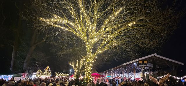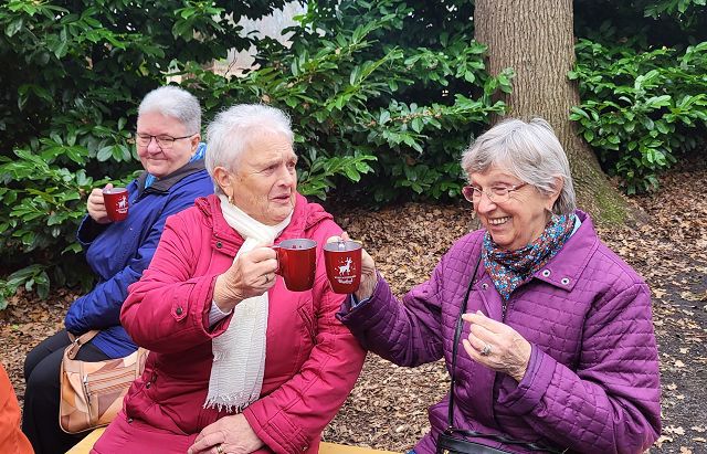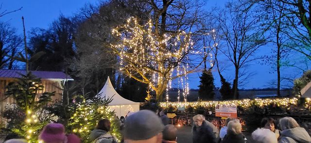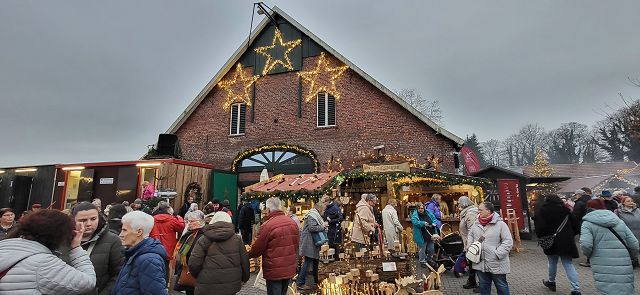 Die letzte Tagesfahrt dieses Jahres ging zum Weihnachtsmarkt nach Borken-Marbeck und es machten sich gleich 2 vollbesetzte Reisebusse auf den Weg. Die Nachfrage zu diesem Weihnachtsmarkt war von Anfang an so groß, dass auch der 2. Bus schnell ausgebucht war. Die Anfahrt gestaltete sich allerdings schwierig bzw. zeitaufwändig. Die Autobahn A3 war wg. eines LKW-Brandes gesperrt und dementsprechend voll waren dann die anderen Autobahnen oder Nebenstraßen. Aber mit einem guten Busfahrer klappt alles und so waren wir trotzdem gegen 14:00 Uhr an unserem Ziel. Der WM ist über seine Grenzen hinaus bekannt und wir konnten uns auf einen besonderen Tag freuen, der viele unterschiedliche Dinge angeboten hat. Der bauernhofähnliche Charakterweihnachtsmarkt auf dem Hof Schulze-Beikel mit Wald und See hat eine besondere Advent-Atmosphäre, die man in den Innenstädten so nicht finden kann. Auf dem 3,5 ha großen Gelände erwarteten uns 5 verschiedene Plätze mit besonderer Beleuchtung und weihnachtlicher Musikberieselung. 220 Stände zeigten hier allerlei verschiedenes Kunsthandwerk und individuell kreatives. Es fanden sich Krippen und Wichtel in jeder Größe, Rentiere aus Holz und sogar afrikanische Souvenirs wurden angeboten. Aber auch für das leibliche Wohl wurde besten gesorgt. Im Hut-Tipi konnte man sich aufwärmen und in die richtige Weihnachtsstimmung kommen, denn hier gab es Glühwein und andere heiße Getränke. Der Heimatverein verkaufte Buchweizenpfannkuchen und Weihnachtswunderwaffeln und auch im Bauernstübchen wartete selbstgebackener Kuchen auf uns. Aber auch deftige Sachen waren im Angebot. Es gab u.a. Wildbratwurst, Wildgerichte, Grünkohl und, und, und……..Den Tag über verteilt gab es immer wieder weihnachtliche Musik des Blasorchesters, der Chöre und Trompeter sowie traditionelle Tänze. Was bei den Senioren besonders gut angekommen ist, waren die vielen Sitzmöglichkeiten mit einer kleinen, aber wärmenden Feuerstelle. Gegen 18:00 Uhr war es dann soweit, dass wir uns alle auf den Weg zu dem Highlight des Tages gemacht haben. Es gab ein farbenprächtiges Wasserfeuerwerk mit Fontänen bis zu 25 Metern Höhe. Und zu unser aller Überraschung kam dann inmitten des Feuerwerks das Christkind und hat mit uns Weihnachtslieder gesungen. Um 18:45 haben sich dann alle wieder an den Bussen eingefunden und wir konnten die Heimreise antreten. Die Rückfahrt verlief ohne Komplikationen und so waren wir gegen 20:30 wieder in Langenfeld am Dißmannhaus. Alle warten begeistert von diesem Weihnachtsmarkt und für viele war dies der schönste Weihnachtsmarkt seit Jahren. Die Verabschiedung ging mit vielen guten Wünschen zum Weihnachtsfest und für das neue Jahr vonstatten. Man war sich wieder einmal einig, auch im nächsten Jahr die Touren der AWO zu buchen, da sie immer gut organisiert sind und auch die Betreuung der Gäste gewährleistet ist.