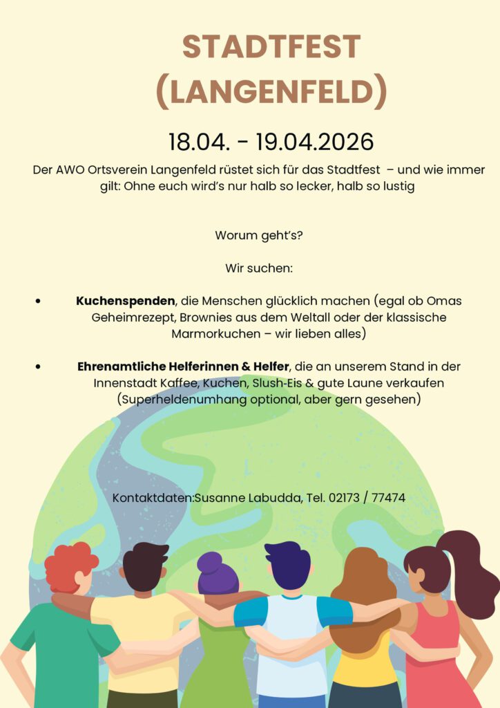 3. Die AWO sucht Helferinnen und Helfer für das Stadtfest