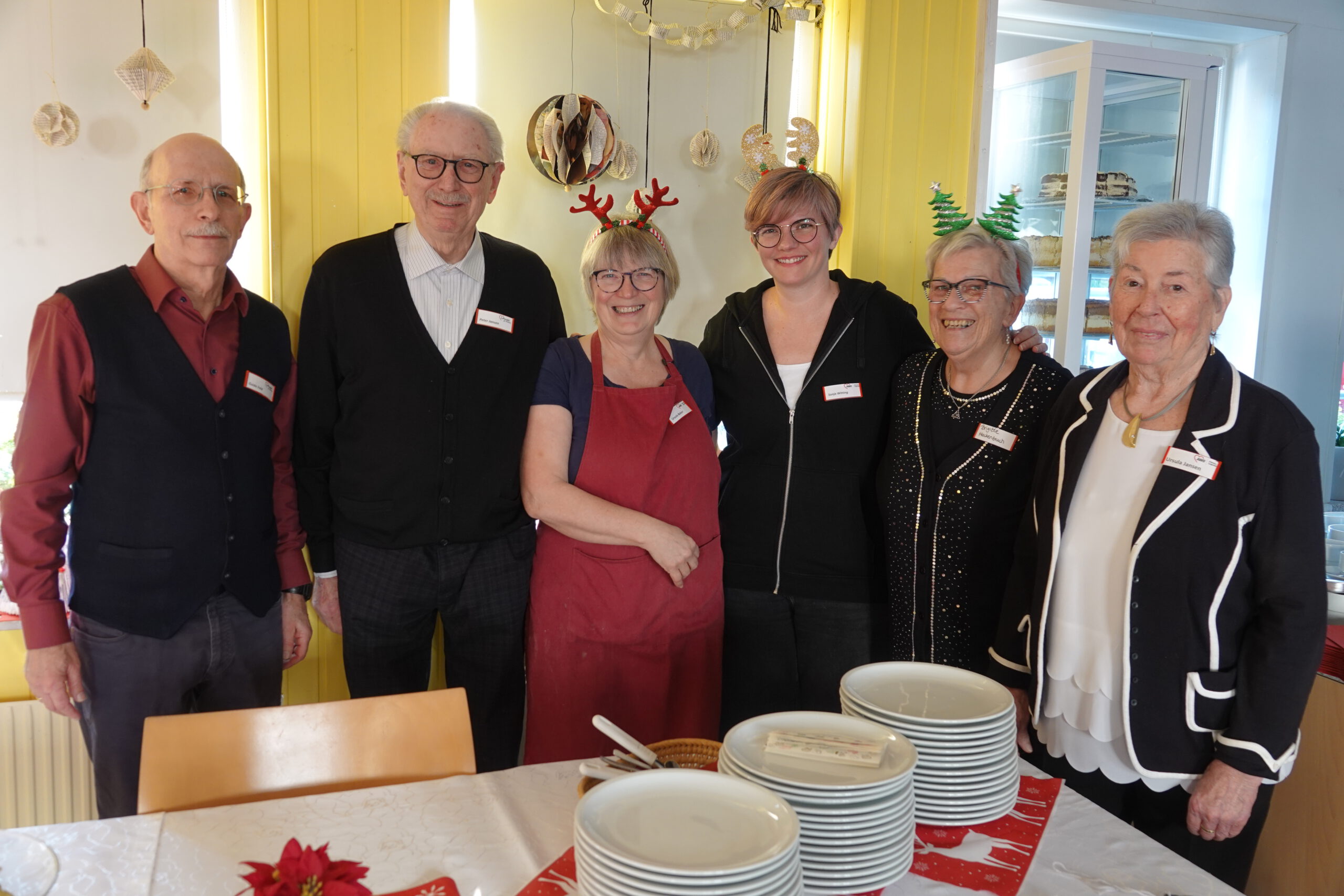 V.l.n.r.: Guido Feld, Peter Jansen, Uschi Balzer, Sonja Witting, Brigitte Hackenbruch, Ursula Jansen – die Ehrenamtlichen der Awo in Vorfreude auf Heiligabend für Alleinstehende