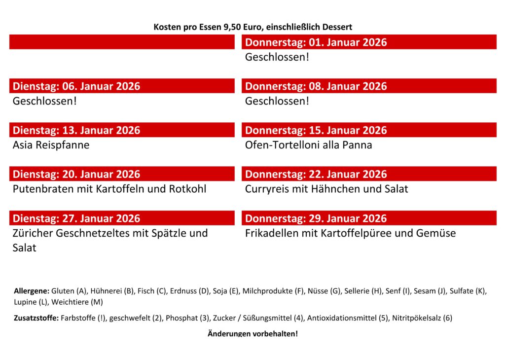 Dienstags und donnerstags servieren wir ein hausgemachtes Mittagessen.