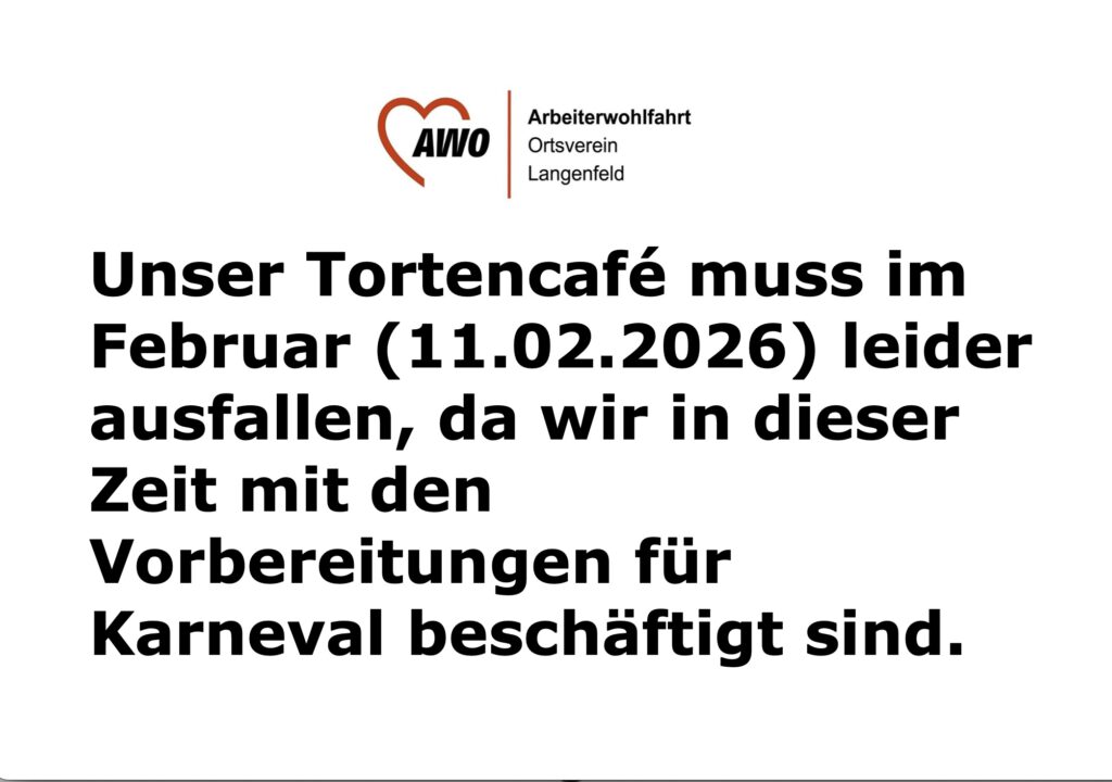Tortencafé muss im Februar (11.02.2026) leider ausfallen